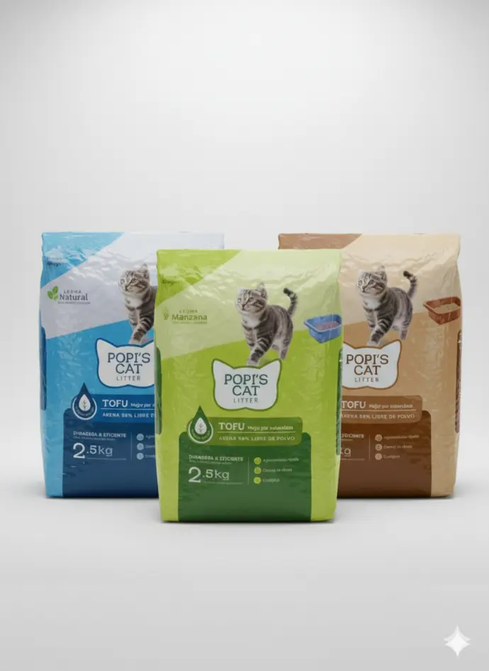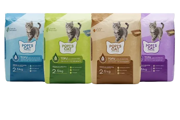Llévate la arena de tofu POPI'S CAT con un precio especial y aromas naturales que tu gato amará.